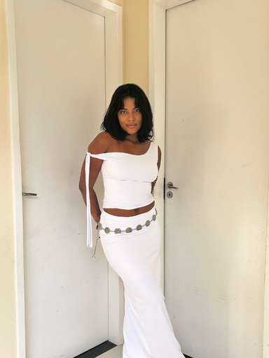 A Blusa Dri é perfeita para looks modernos e cheios de personalidade. Combine com saias ajustadas ou peças de cintura alta para destacar a modelagem nos ombros. Para um visual mais elegante, aposte em alfaiataria e salto. Já para o dia a dia, use com jeans e sandálias para uma proposta leve e estilosa. A amarração lateral permite criar um ajuste mais personalizado, além de trazer um charme extra ao look.